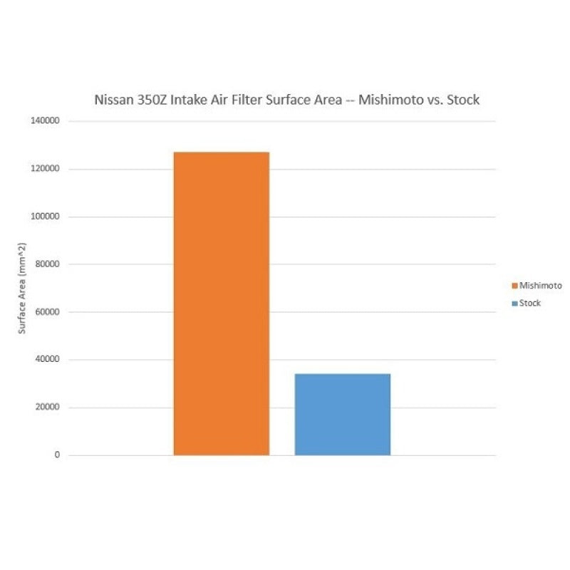 Add some horsepower and sound to your Nissan 350Z's VQ35DE engine with the new Mishimoto Performance Air Intake. This kit is engineered specifically for your 2003--2006 Nissan 350Z and includes everything needed to replace the restrictive stock airbox. This dyno-proven air intake provides maximum gains of 10 hp and 13 tq over the stock intake while maintaining safe air/fuel ratios. This kit is simple to install, making it perfect for some extra punch on the street or autocross course. The Mishimoto Nissan 350Z Performance Air Intake includes everything needed for installation, installs in under one hour, and works perfectly with the stock tune. The stock MAF housing is retained which translates into a smooth power band with safe air / fuel ratios. To reduce air intake temperatures (IATs), a powder-coated heat shield is placed between the air filter and hot exhaust manifold, significantly reducing heat-soak. The heatshield bolts right up to the stock inlet duct on the front support to draw in the maximum amount of outside air into the filter. The heatshield also comes fully assembled with protective rubber strips to fully seal it from hot engine bay heat and prevent any vibrations during operation. The Mishimoto high-flow air filter features an integrated venturi and center inlet stack for smooth, high velocity airflow. The large filter provides 271-percent greater surface area over stock and provides proper filtration of dirt and debris. The included Mishimoto oiled air filter is completely serviceable, allowing for a lifetime of reliable use. Along with an upgrade in power, this intake also provides an aggressive and deep-sounding intake tone that is a huge improvement over the stock intake. The Mishimoto Nissan 350Z Performance Air Intake is designed in Delaware, USA and includes the Mishimoto Lifetime Warranty.